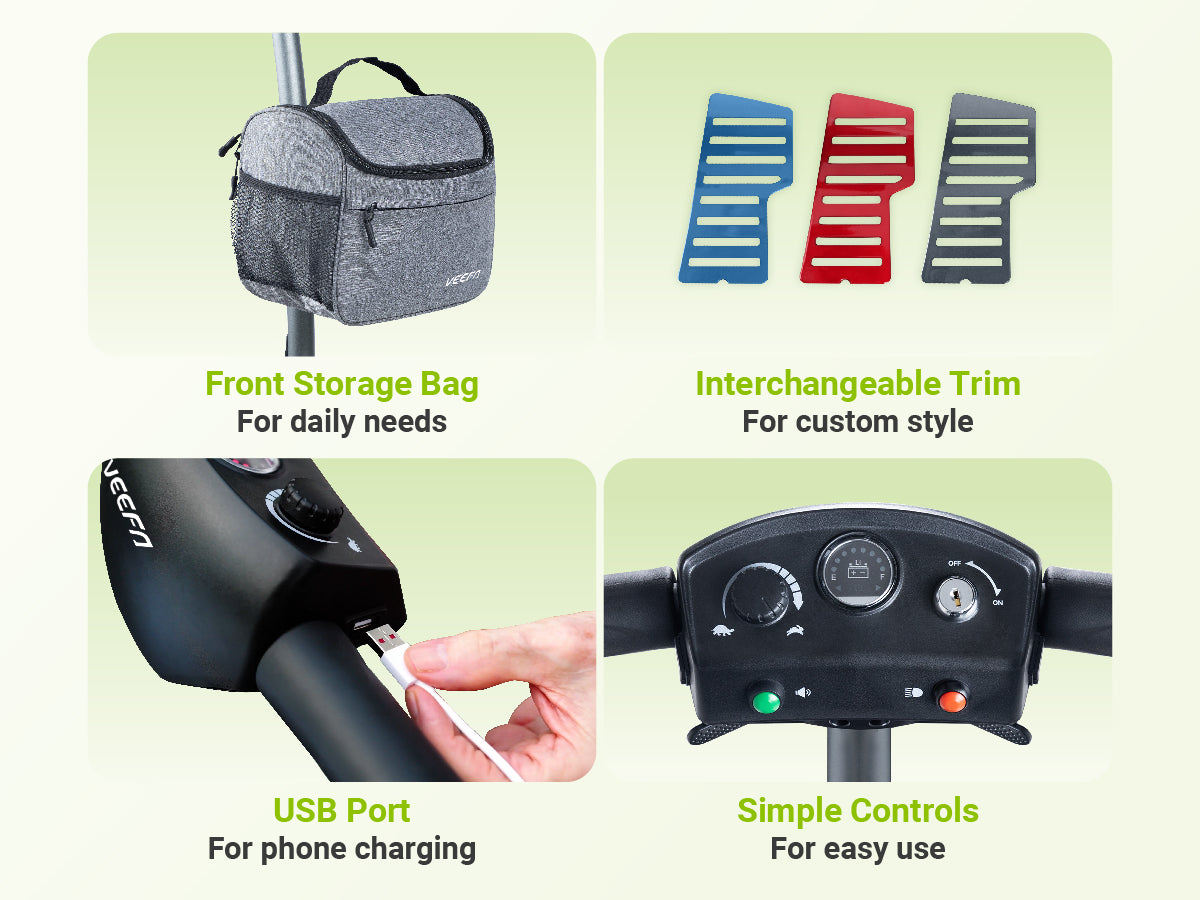 Conçue pour les aventures quotidiennes, cette trottinette pliante à 4 roues offre une conduite confortable et fiable. Sa batterie amovible offre jusqu'à 25 km d'autonomie, tandis que le port USB intégré et le sac de rangement inclus garantissent une commodité sans effort et en déplacement.